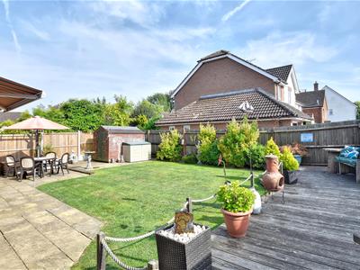 The rear garden is of a good size and enjoys a southerly aspect being predominantly laid to lawn and bordered with beds planted with a mixture of mature shrubs and seasonal flowers, abutting the rear of the property is a paved patio area extending the width of the house leading to a decked terrace offering space for outside dining and entertaining, timber garden store with power connected.