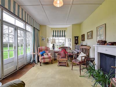 5.97m x 3.48m (19'7 x 11'5 )Access via the steps descending from the kitchen/breakfast room and is double aspect with window to the rear and glazed double doors to the side elevation allowing access through to the garden, feature fireplace, radiator.