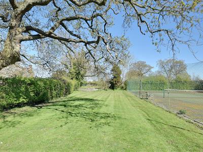 The well-stocked gardens are a real feature of 'The Hall' and are believed to measure approximately 1.8 acres (TBV.) To the front an extensive gated 'in and out' gravelled driveway providing off road parking for a number of vehicles and allows access to the attached garage. A sweeping gravelled driveway/pathway continues to one side leading to the established formal rear gardens which benefit from a southerly aspect and are predominately laid to lawn being interspersed with a selection of mature native and fruit trees and bordered with a range of well stocked beds planted with an array of established shrubs and seasonal flowers. A paved patio area abuts the rear of the house offering a delightful and private space for outside dining and entertaining and enjoying a pleasant vista across the garden. To one side there is an wide life pond and a full size tennis court with small summerhouse.