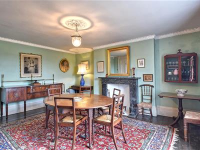 All the main rooms offer elegant Georgian proportions with high ceilings, original fireplaces and beautiful tall sash windows. The accommodations is arranged over four floors with a cellar and comprising of an entrance hallway, drawing room, dining room, library, walk-in pantry/utility room, shower room, boot room, morning room and kitchen/breakfast room with Aga on the ground floor. To the first floor is the family bathroom and four double bedrooms, the main with an en-suite shower room and dressing room. On the second floor are two further bedrooms, all rooms take advantage of the beautiful setting surrounding the property and enjoy impressive rural views. Outside the property benefits from an extensive 'in and out' gated gravelled driveway providing off road parking, an attached garage with adjoining greenhouse, full sized tennis court and established formal gardens in all measuring approximately 1.8 acre (TBV).