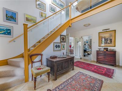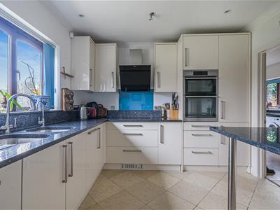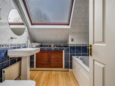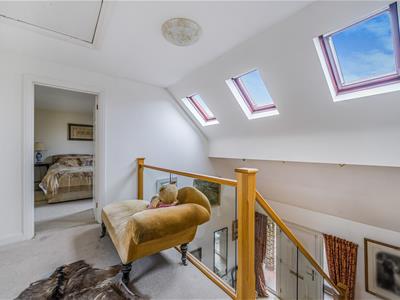 An incredibly light and airy vaulted reception hall has a downstairs cloakroom and stairs with a glass balustrade up to a gallery landing. The flexible layout provides for either the current 3 reception rooms and a downstairs principal bedroom and en-suite, or if preferred, 4 reception rooms. Ideal for open plan living and entertaining the beautiful garden room with atrium skylight is open plan to both a sitting room with a multi fuel stove and a generous dining room. The well equipped kitchen has granite worktops and upstands, an array of quality integrated appliances and leads into a 16ft utility room with ample well designed storage cupboards. Set off the gallery landing are four bedrooms, all with dormer windows and the family bathroom with a white suite.