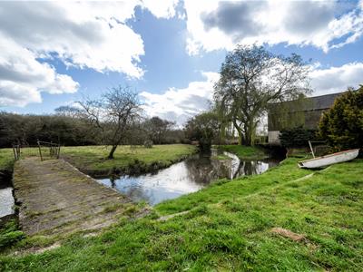 Outside, double gates open through to a large courtyard and private parking area. To the left, a gate leads into a walled former 'kitchen garden'. There are two substantial outbuildings- both divided into 3 sections and each offering scope for a range of possible future uses. To the rear, the garden backs on to the wonderful brook and has two simple bridges that cross over to an island and then into a small rough paddock area.