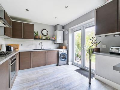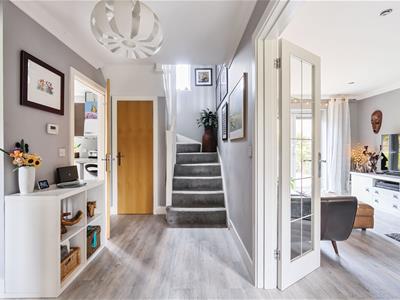 An attractive detached family home located in delightful position on this favoured close with open lawn to the front. The owners have enhanced and upgraded the interior to a far superior specification and it is only by an internal viewing can this be truly appreciated. The interior, which is beautifully presented throughout, is arranged over two floors comprising a hallway with cloakroom, a bright and spacious double aspect sitting room with wood burning stove and a separate dining room. A door from the hallway opens into a fitted kitchen complemented by a built-in oven and hob and breakfast bar. The first floor boasts a spacious landing, a master bedroom with en suite shower room, two further double bedrooms and a family bathroom with shower cubicle. French doors from the kitchen and sitting room open onto a timber decked patio that extends to the full width of the property. The rear garden is laid to lawn and bordered by attractive shrub beds and enclosed by a fenced boundary. There is direct access from the garden into the garage, a gate leading to an allocated parking space and latched gates to both sides of the property.