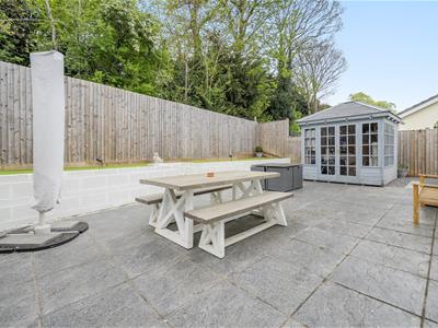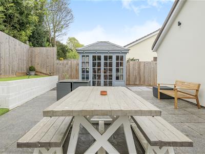 Externally there is private, landscaped, low-maintenance rear garden, predominantly made up of patio seating and artificial turned areas, with a wonderful summer house, There is wide side access to the front of the property. To the front is the single garage, and driveway parking.