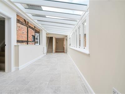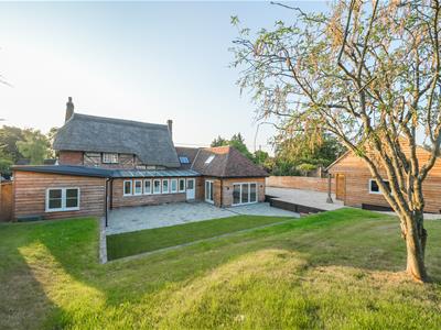 This attractive Grade II Listed home has been substantially enhanced through a series of extensions but retains a wonderful 'homely' feel of the original cottage. The whole house is light and airy with an adaptable layout that could suit multi generational living or families with older children. Either side of the entrance hall are two charming reception rooms with exposed beams (a sitting room and snug) and a further door through to a stunning 28ft garden room. this has a continuation of the stone flooring and fine views. There is a new cloakroom, original exposed wall timbering and a glazed roof. A large dual aspect double bedroom is off to the right hand side with its own luxurious en suite with tiled flooring and a double width shower with 'rainfall' shower head. Glass panelled oak double doors from the garden room open into a dining/family room with engineered oak flooring. This triple aspect room has bi folding doors to the rear and French doors to the side with a step up to the elegant new kitchen with under floor heating, granite worktops, a breakfast bar, stone flooring, a 'Neff' 5 ring induction hob, integrated dish washer and full height fridge and freezer. The utility room has a washing machine and tumble dryer included. Two separate staircases ascend to the bedrooms. Via 1 staircase are the main bedroom with fitted wardrobes, a flexible 5th bedroom/study and a beautiful bathroom with a shower and roll top bath. Via the 2nd, are 2 more double bedrooms complemented by a newly created shower room.