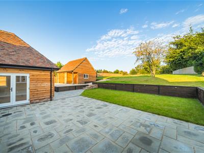 Outside, a large gravelled driveway provides ample parking and leads to the timber clad garage. The large patio sun terrace with lights, has steps up to the wonderful newly turfed lawn with countryside views beyond.