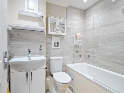 Internally, an entrance hall leads in to a light sitting room, which in turn opens through to a 15'10" open plan kitchen / dining room with space for appliances and colourful tiled splashbacks, and a conservatory to the rear. On the first floor there are three bedrooms- (2 doubles and 1 single) and a contemporary family bathroom with tiled walls and bath over the shower.