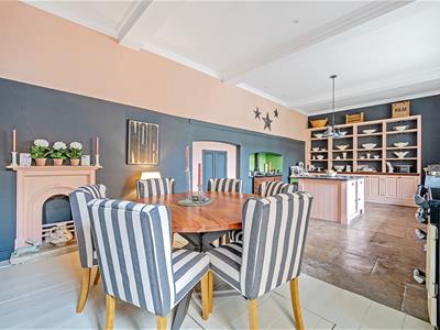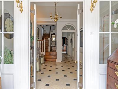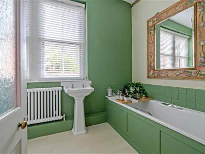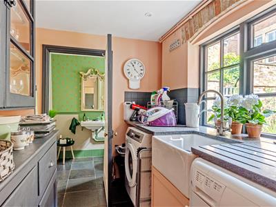 Internally, a lobby with flagstones and glass panelled doors opens through to a grand entrance hall with tiled flooring and stairs up to the first floor. An elegant drawing room with large sash windows, painted wooden floorboards and an attractive fireplace with inset gas fire, leads through to a flexible snug/family room with shelving and stone tiled flooring and a further ornate fireplace. Sash windows overlook the private rear garden. The heart of this home and a splendid eating/entertaining space is the 31ft long kitchen/breakfast room, which has a range of painted bespoke units as well as a central island with granite worktops and a stunning dresser with inset display lights. Again the high ceiling is a notable feature as are the flagstones and painted floorboards that divide the room. The kitchen is well equipped with an American style fridge/freezer and a 'Rangemaster' oven, alongside a gas fired AGA and integrated dish washer. Set off the Kitchen is a useful utility room and downstairs cloakroom. In the breakfast room alongside a cast iron fireplace and storage cupboard is the remote controlled access hatch and stairs down to a wonderful cellar that provides excellent storage (as well as potential for conversion to further accommodation). On the first floor there are 3 double bedrooms and a stylish family bathroom. The dual aspect main bedroom also enjoys a refitted en suite. On the top floor there are 3 further double bedrooms (or a study) and a shower room.
