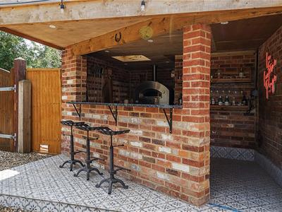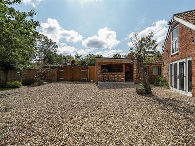 Externally the property benefits from a large, south facing rear garden, split into a large gravelled parking area for multiple vehicles, and large lawned area with beautiful, established borders with mature trees, and two patio seating areas. There is a fantastic garden bar with pizza oven, separate workshop, and car port. To the front is driveway parking for one car.