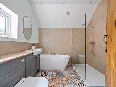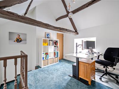 The internal accommodation is arranged over two levels, and briefly comprises; entrance porch, dining room with opens into the sitting room, with a large roof light, which was added in 2022. There is a large kitchen / breakfast room, with country style kitchen units, Aga cooker, flagstone flooring and wood burner, recently replaced conservatory (2022), with bi-folding doors to the rear patio area, utility / cloakroom, beautifully appointed family bathroom with separate shower, and two double bedrooms, one of which benefits from French doors to the rear garden, and a staircase leading up to a lovely study area / loft room. To the first floor is a large study / office area, two principal bedrooms, and a further family shower room.