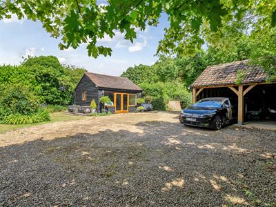 Externally there are wrap around gardens to three sides, and within them are two beautifully constructed multi-functional outbuildings, which are currently being used as a fully equipped gym and as a studio / family room. There is an oak framed double car port. and large driveway for multiple vehicles. The gardens are private and fully established, stocked with a variety of trees, plants and shrubs, and back onto open farmland to the rear. There are a variety of seating areas hidden away to take in the views, of particular note is the decked terrace off the studio which makes a lovely BBQ spot.