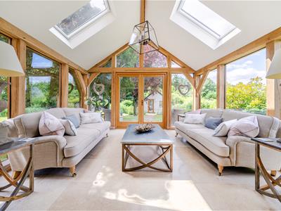 The accommodation is arranged over two levels, and briefly comprises; entrance porch, entrance hall, large dual-aspect L-shaped sitting room, with open fireplace, dual aspect dining room, bespoke fitted kitchen with central breakfast island, sleek granite worktops and a cream coloured AGA (disconnected). There is a lovely snug which leads through to the beautifully appointed oak framed garden room, which overlooks both the garden and neighbouring fields, cloakroom, utility room and pantry, to the ground level.