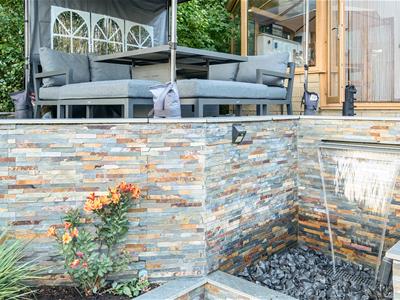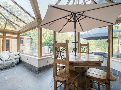Externally the property offers wrap-around gardens, laid predominantly to lawn, with a range of trees (including many apple and plum fruit trees and a large fig tree), shrubs and ornamental flowers. The garden is mature, and wonderfully private. There is a large, 2-tier patio area with a gazebo and 2 large blade water features, perfectly taking advantage of the stunning surroundings and for entertaining family and friends.
