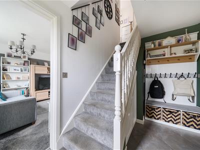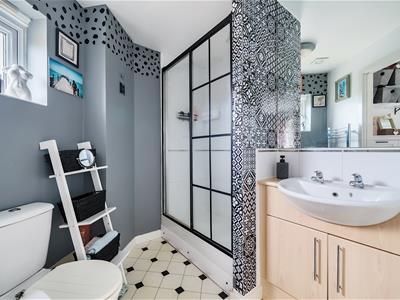 To the first floor, there are three bedrooms and a modern family bathroom. The principal bedroom benefits from fitted wardrobes and a modern en-suite shower room.
