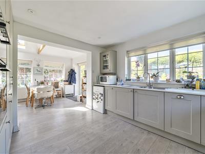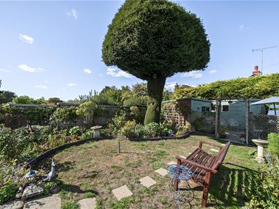 Outside, the property boasts a large rear garden that serves as a private oasis. The garden is beautifully landscaped with vibrant flower beds, established trees, and shrubs, creating a serene environment. The lawn is well-maintained, providing ample space for outdoor activities, while a charming patio area is perfect for alfresco dining or enjoying the sunshine. Additionally, there are convenient sheds and outbuildings for storage, enhancing the practicality of the outdoor space.