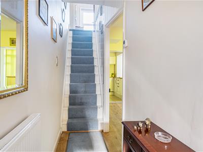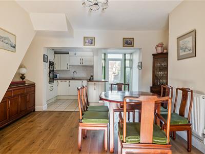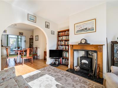 Sold with no onward chain and located in the delightful village of Box, we are pleased to offer for sale this 3 bedroom Victorian style terrace home with large garden. Situated on the High Street, the property is approached via steps to the front door into the main hallway. This is laid to engineered oak flooring and has stairs to the first floor and a door to the downstairs living area. The original layout of the house was a living room and separate dining room. The property now has one through living area separated by an arch. The living room is to the front and has a window to the High Street, a feature fireplace with inset log burner whilst the sizeable dining area is complimented by being open plan to the kitchen making this a large social area. The kitchen itself has a number of Shaker style wall and base units and built in appliances which include a fridge freezer, double oven, dishwasher and washing machine. A breakfast bar separates the dining area which has a door to the cloakroom with wall mounted boiler, a door leading to the garden and tiled flooring continued from the kitchen. Off the first floor landing are two of the bedrooms, both double, the main being to the front with a large window. A staircase with paddle steps leads to the top floor landing with sky light and eaves storage and a door to the third bedroom. This room has a sky light to the rear and further eaves storage. The property is double glazed throughout and warmed by a mains gas fired heating system. Externally their a small front garden and the rear is private and enclosed by fencing, laid to patio with a large shed/workshop/office with power and light. Through a gate at the end of the garden, a path leads to the off road parking for one car and access to the detached garden. Steps lead to a path at the bottom which leads to the stream at the bottom of the garden. The path runs to the left hand side of the garden which is laid to lawn with established bushes and shrubs.