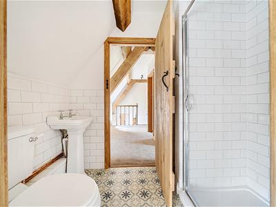 To the first floor are three well-proportioned bedrooms and a modern shower room, accessible from both the principal bedroom and the landing.