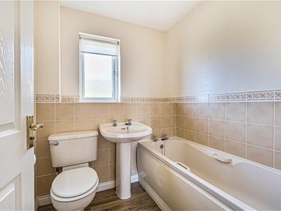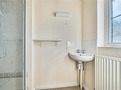 To the first floor, there are two bedrooms and a bathroom. The principal bedroom enjoys an en-suite shower and basin.
