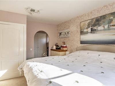 Built in 2003 and owned since new, the property has been beautifully maintained by the owners and offers a well balanced layout with the 4 bedrooms complemented by 2 good reception rooms plus a conservatory. A light entrance hall with wood effect flooring and a refitted downstairs cloakroom, opens off to a 21ft siting room with a pebble effect electric fire and surround. From the sitting room, glass panelled double doors open into a separate dining room as well as a further set of French doors leading into the triple aspect conservatory which also has wood effect flooring. A stylish kitchen has ample worktop space plus a range of quality appliances including an integrated dishwasher, double oven and 4 ring gas hob. Accessed off the landing are the 4 bedrooms (3 doubles and a single) plus a large airing cupboard. The principal bedroom has a dressing area, plus a lovely modernised en suite shower room. The refitted family bathroom has fully tiled walls and a bath with a shower over and glass screen.