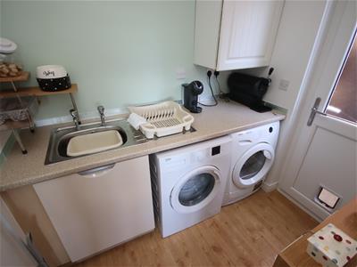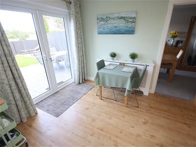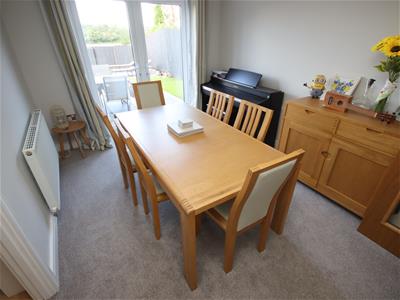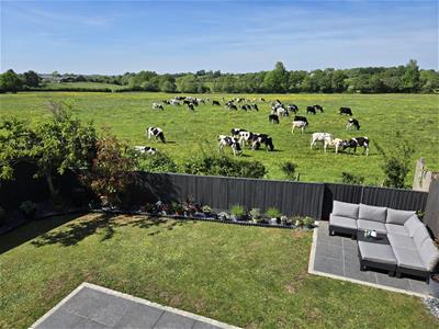 Externally the property benefits from a private and enclosed rear garden, laid predominantly to lawn, with a lovely patio seating area and pretty border. There are lovely views over the neighbouring countryside, with a range of farm animals sometimes in view. To the front is the single garage and driveway parking.
