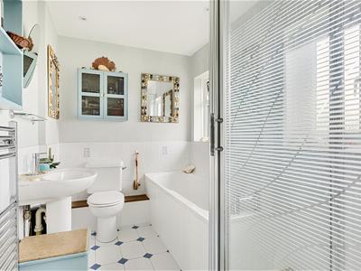Upstairs, the first floor offers three well-proportioned bedrooms, two doubles and a single/office and a family bathroom fitted with a shower and a bath. The layout provides flexibility for families, downsizers, or guest accommodation.