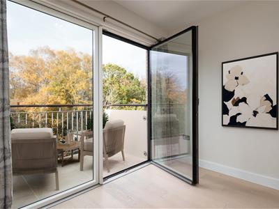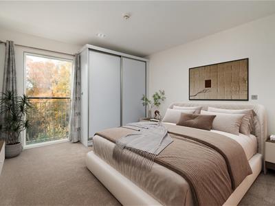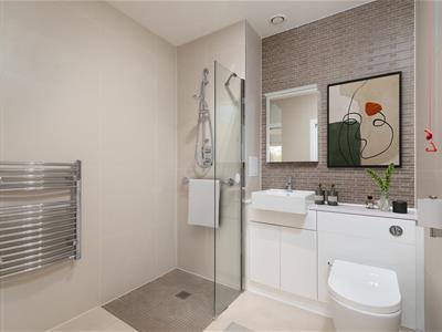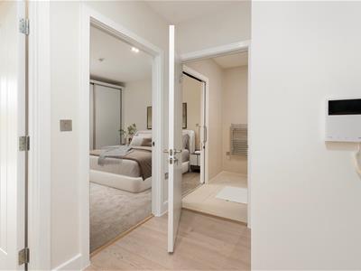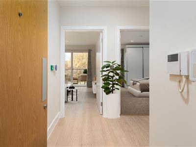 Situated in the Pavilion building, which is the hub of the village. This apartment benefits from a fully automated front door. The living room has a large picture window and a west-facing balcony with amazing countryside views. The kitchen with integrated Bosch appliances, including oven, hob, washer dryer, slimline dishwasher and a fridge with freezer compartment. A large carpeted bedroom with fitted double wardrobes and a Juliette balcony. En suite shower room with Porcelanosa sanitary ware including a bidet toilet attachment, ceramic tiled floor with mosaic tiles in the shower area. Heated towel rail and illuminated mirror. Engineered light oak hardwood high-quality flooring with thermostatically controlled underfloor heating via a centralised system