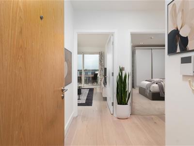 This stunning 1-bedroom pre-owned retirement apartment is operated by Rangeford Villages. Situated in the Pavilion building, which is the hub of the village. This apartment has a large picture window in the living room with an east-facing balcony with amazing far-reaching views. The kitchen with integrated Bosch appliances, including oven, hob, washer dryer, slimline dishwasher and a fridge with freezer compartment. A large carpeted bedroom with fitted double wardrobes and a Juliette balcony. En suite shower room with Porcelanosa sanitary ware, including a ceramic tiled floor with mosaic tiles in the shower area. Heated towel rail and illuminated mirror. Engineered light oak hardwood high-quality flooring with thermostatically controlled underfloor heating via a centralised system.