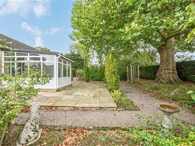 This large and substantially built 4 bedroom detached bungalow. Located in this delightful and popular village the property is sold with no onward chain and situated in a cul de sac of just 9 other detached bungalows, the property has an externally built Upvc porch through to the spacious main hallway. Off this hallway are the bedrooms, the largest of which is located to the front with an en suite shower room, and the second bedroom has a window to the side and built in wardrobes with hanging and shelving space. There is a cloakroom, separate bathroom and further bedroom with a window to the side. The fourth bedroom, which could also be utilised as a study has a window to the front whilst the spacious light and airy living room has a large window to the front and feature fireplace with gas fire. The dining room is to the rear with patio doors and steps down to the conservatory with a door to the kitchen. The conservatory is made from Pvc and has access to the large garden. The kitchen is fitted with a range of shaker style wall and base units with built in appliances which include an electric cooker and gas hob as well as space for a tumble dryer, washing machine and dishwasher. The property is warmed by a mains gas fired central heating system and is double glazed throughout. Externally the property sits in a good sized plot. The front is laid to lawn and sits behind a small wall with a path leading to the front door. The side, laid to stone chippings is enclosed by a hedgerow. The rear is enclosed by hedgerow and laid to a mixture of patio and stone chippings with a large deciduous Plane Tree which the cul de sac is named after. The far side has a large driveway which will accommodate up to four cars leading to the tandem garage which has a courtesy door to the side. In need of some updating this property could make a fantastic family home in this friendly community.
