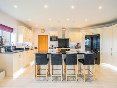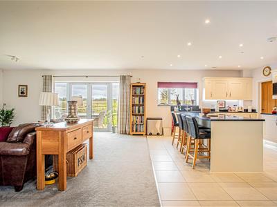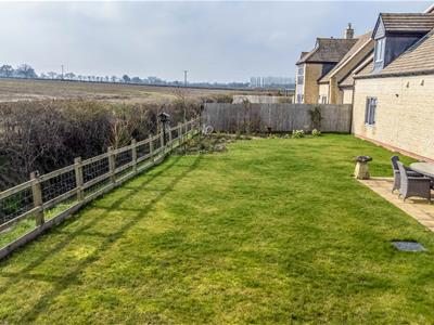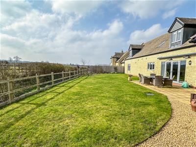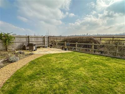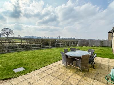 French doors from the living room open onto a paved patio and lawned rear garden, all enjoying far reaching views over the surrounding farmland. There is a further patio in one corner of the garden which is enclosed by a fenced and post and rail boundary. A driveaway to the front approaches a double garage with electronically operated door.