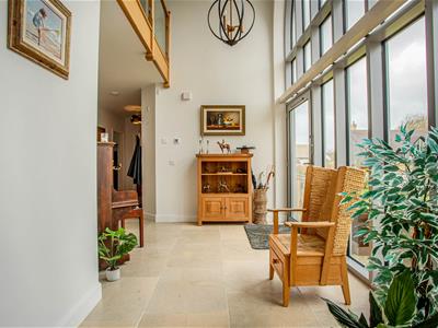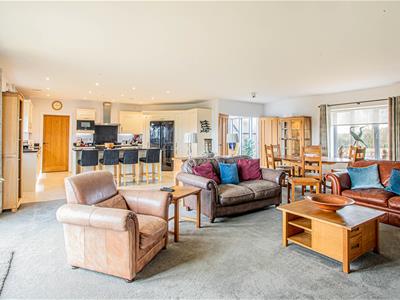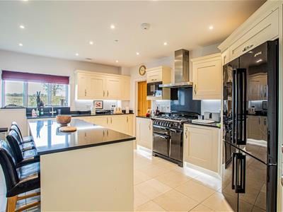 The layout of this stunning property offers versatility with two spacious ground floor bedrooms both with built-in wardrobes and shower room, ideal for anyone who requires single storey living. From the large reception hallway, double doors open onto a spectacular open plan kitchen/living/dining room with wood burning stove, french doors onto the garden and underfloor heating. The beautifully appointed kitchen supplied by locally based Manor Interiors is complimented by granite worktops and has integral Siemens appliances to include an American style fridge/freezer, wine cooler, dishwasher, microwave and a Rangemaster range cooker. There is a steaming hot water and cold filtered water tap. There is also a utility room off the kitchen.