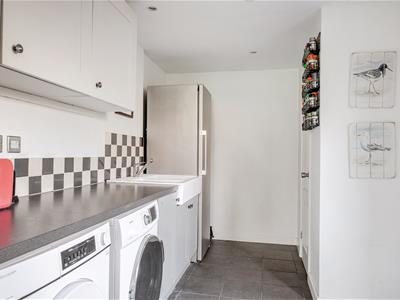 A spacious entrance hallway welcomes you in, complete with an under-stair cupboard and downstairs W/C. To the left of the entrance hallway, a flexible room that could be used as a study, snug, or additional reception space. To the right, a large living room with a big front-facing window, made cosy by a wood-burning stove. At the rear, the real ‘wow-factor’ of the home—a stunning open-plan kitchen/dining room leading into a conservatory. This stylish and spacious area is perfect for both entertaining and family life, featuring a breakfast bar, integral dishwasher, and a range of wall and floor-mounted units. The conservatory enjoys a delightful outlook over the rear garden, and a separate utility room provides room for further appliances, further storage and side access.