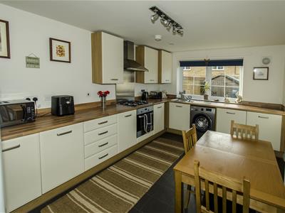 On the ground floor, a welcoming hall leads into a generous dual aspect lounge, filled with natural light and offering plenty of room for the family or entertaining. To the rear sits a kitchen/dining room, complete with ample work surfaces, modern units and space for a family dining table, with a useful W/C and understairs storage completing the ground floor accommodation.
