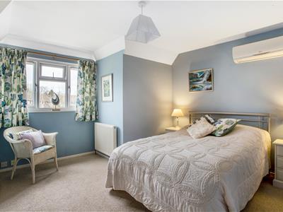 The principal suite features a dressing room and en-suite, complemented by a guest en-suite, family bathroom, and two further bedrooms, with an additional bedroom/study and shower room on the top floor.
