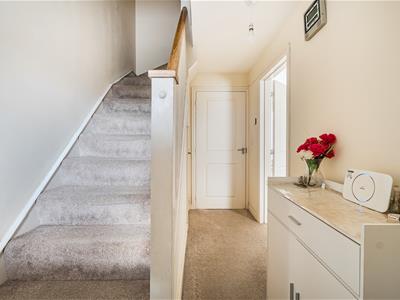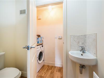 Walking in through the front door and porchway, opening into the hallway, there is a useful under stairs storage cupboard, plus a downstairs WC with a laundry room behind. To the left hand side is a dual aspect, full length sitting room with French style doors opening onto the garden to the rear. Leading off from the right hand side of the hallway is the open plan family orientated kitchen/diner with sliding doors to the rear garden. The kitchen has a range of fitted wall and floor units as well as integrated appliances to include an oven, microwave and 4 ring gas hob.