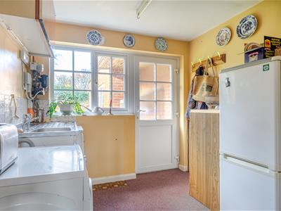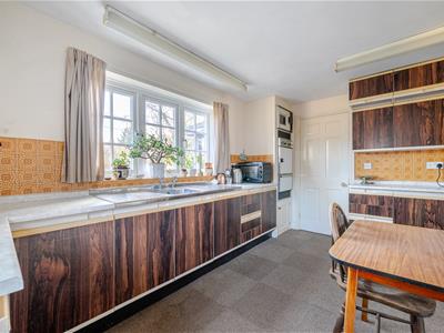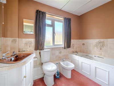 This is the first time the property has been on the market for 40 years and whilst much loved in this time, it is now at an age where buyers have a good opportunity to modernise it to their own specific requirements and tastes. The layout is spacious and well balanced with a decent sized entrance hall opening into a 23ft triple aspect sitting room with French doors out to the garden. Internal double doors lead through to a separate dining room. A fitted kitchen has a range of wall and base cupboards with doors back to the hallway, as well as into a useful utility room. A downstairs cloakroom completes the ground floor. On the first floor there are 4 double bedrooms (3 of which have fitted wardrobes/built in cupboards and 2 with wash hand basins), plus the family bathroom. In bedroom one there is an additional shower in the corner of the room indicating the potential to create an en suite shower room if one so wished.