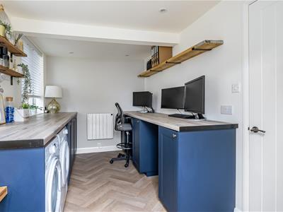We are delighted to bring to the market this truly stunning 2-bedroom semi-detached property that has undergone an extensive refurbishment throughout to a very high standard. Great care and attention to detail have been used to give a wonderful light contemporary feel along with natural tones to give a very calming feel throughtout. The living accommodation comprises an entrance hall with stairs leading to the first floor, along with a door that leads into the living room with oak flooring that extends into the kitchen and a window to the front. This leads into the newly fitted kitchen breakfast room that has a number of integrated appliances along with both a window and a door that overlooks the rear garden. Moving upstairs, the principal bedroom to the front is a large double bedroom has had hand-made fitted wardrobes installed that give excellent storage, along with a generous-sized single bedroom to the rear. The bathroom has also been replaced with a white contemporary suite. Moving outside the gardens is a real joy to behold and far larger than one might expect, and having been a real passion for the owners, they have created a really wonderful place to relax and entertain friends and family. Another bonus is the single garage that has undergone extensive work to create a wonderful home office to the rear while maintaining very handy storage to the front, both with ample power and lighting, along with plumbing for household appliances. To the front, there is driveway parking for up to three cars. In short, one of the most impressive two-bedroom homes offered for sale in Corsham for many years.