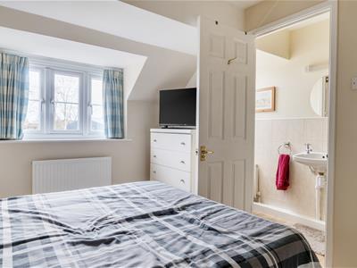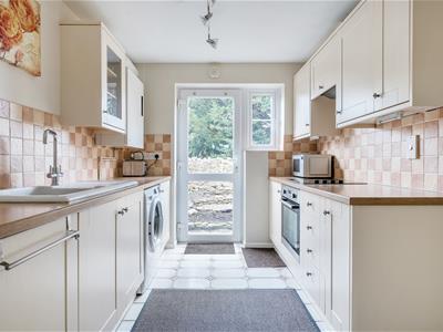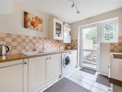Internally, the surprisingly spacious layout comprises a light welcoming entrance hall with understairs storage and a door into a 14ft sitting room with a feature fireplace surround and granite hearth. There is a large opening through to a separate dining room with French doors out to the rear garden and views of the village church and churchyard. The kitchen is fitted with an electric oven and 4 ring ceramic hob with an extractor hood over and space for further appliances. On the first floor, the main bedroom is a good sized double with plenty of fitted wardrobes and has the benefit of a modern en suite shower room with wood effect flooring and a Velux skylight. There are two further bedrooms both enjoying views over the rear garden and adjacent churchyard and the fields beyond, and a family bathroom with a contemporary suite and ceramic tiled flooring.