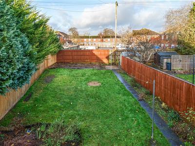 The accommodation includes a good-sized reception room and a kitchen overlooking the rear garden, with a ground-floor cloakroom completing the layout. Upstairs are three bedrooms, two doubles and a single, served by a family bathroom.