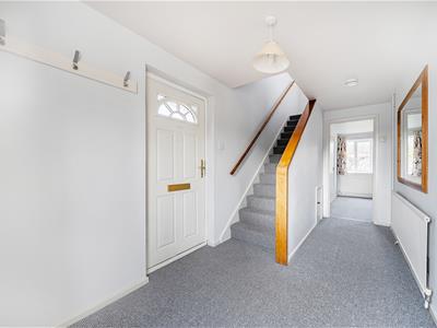 The accommodation is arranged over two floors and begins with a central entrance hall, providing access to the main living spaces. To the front of the property is a good-sized reception room, offering a bright and comfortable sitting area. To the rear is a separate dining room which connects through to the kitchen, creating a practical layout for family living and entertaining. The kitchen is fitted with a range of wall and base units and leads through to a useful utility room, with W/C next to it, beyond which is a conservatory overlooking the garden, providing an additional reception space with a peaceful garden outlook.