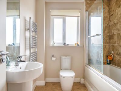 Upstairs, the property offers four bedrooms, including a generous main bedroom with en-suite shower room. Bedrooms 1 and 2 have built in fitted wardrobes. There are three further bedrooms, all served by a family bathroom, providing flexible space for growing families, home working or guest accommodation.