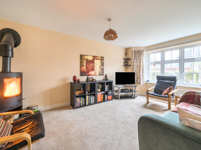 The accommodation is arranged over two floors and begins with an entrance hall providing access to the principal ground floor rooms. The living room is positioned to the front of the property and features a log burner, creating a warm and welcoming focal point. To the rear is a spacious kitchen/dining room, well suited to modern family life, with ample space for a dining table and direct access to the garden. A useful utility room and ground floor W/C complete the downstairs accommodation.