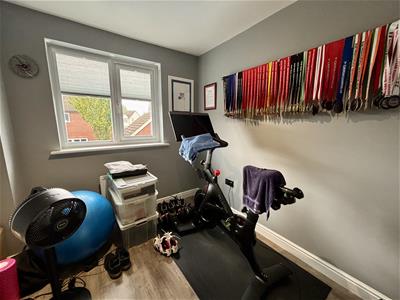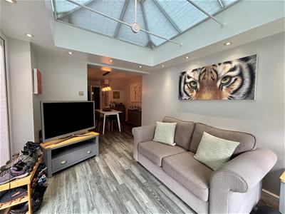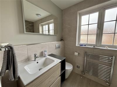 On the ground floor, the accommodation includes a welcoming sitting room to the front, a modern kitchen opening through to the dining room, and a superb garden room extension at the rear – a versatile space ideal for family living and entertaining. A useful cloakroom completes the ground floor.