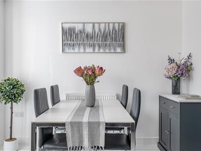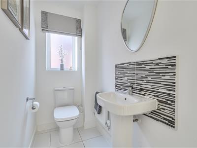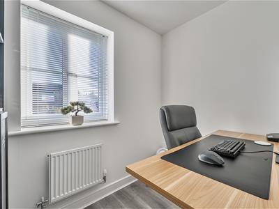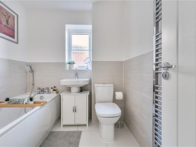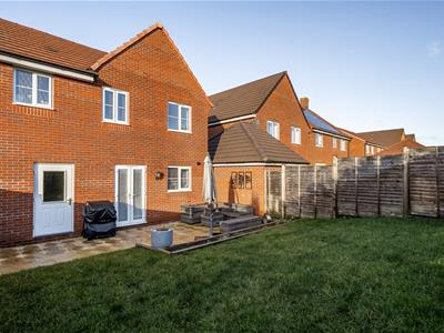 On the first floor, there are three good size double bedrooms complemented by a flexible work from home study or possible nursery/dressing room depending on your requirements. The principal bedroom has an en suite with a double width shower, and there is a sleek modern family bathroom to complete the layout. The 19ft long garage has light, power and a personal door to the rear garden. The garden is fully enclosed, south facing and enjoys a good amount of privacy. It is mainly laid to lawn with an extended patio sun terrace ideal for al fresco eating and entertaining.