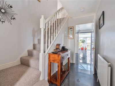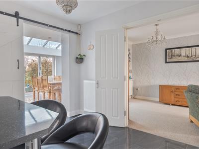 An attractive four bedroom detached family home set in a delightful semi rural location amid delightful gardens, in the heart of this desirable village. The property has been carefully designed to provide balanced accommodation, which is beautifully presented throughout. The ground floor comprises an entrance hallway with cloakroom, a bright and spacious sitting/dining room with feature fireplace and a recently refitted kitchen/breakfast room with a range of integrated appliances and a separate utility room. A door from the kitchen open into a spacious conservatory with delightful views over the rear garden. The first floor boasts a master bedroom with an en suite shower room, three further bedrooms and a family bathroom.