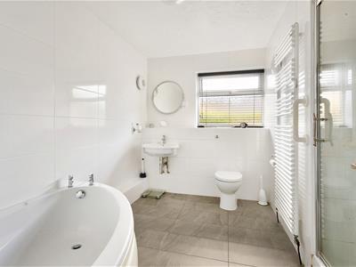 To the rear half of the bungalow you will find a master bedroom with refitted ensuite, 2 further bedrooms and a single bedroom/study. All bedrooms have built in wardrobes. There is also a refitted family bathroom with four piece suite.