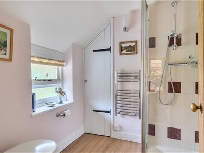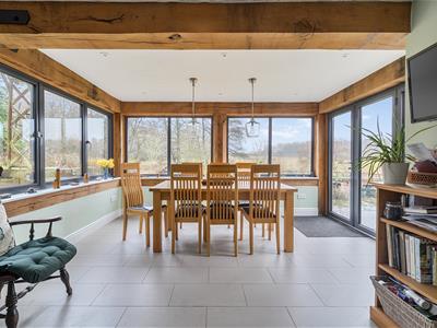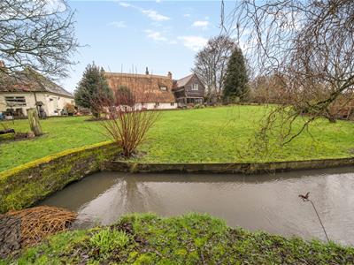 Outside, the property is set within generous, well-established gardens, predominantly laid to lawn with a variety of mature shrubs, trees, and colorful flower beds. The gardens enjoy delightful views across neighboring fields and are intersected by a charming stream, creating a strong sense of connection to the surrounding countryside. Additional gated access is available from further along the lane.