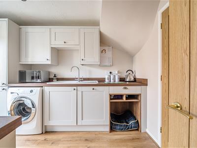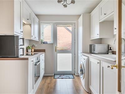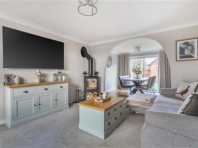 The ground floor accommodation is centred around a welcoming reception room, featuring a recently installed log burner which creates a warm and inviting focal point. This leads through to a separate dining room, well suited to both everyday family life and entertaining. The kitchen has been newly fitted and is smartly finished, offering a modern and practical space, well equipped with a range of integrated appliances including a fridge/freezer, fan oven, dishwasher and four-ring hob with extractor hood.
