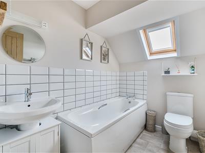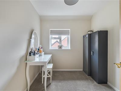 Upstairs, the principal bedroom benefits from its own en-suite shower room. There are two further bedrooms, with bedroom two enjoying a peaceful outlook to the rear, and bedroom three providing space for a single bed, making it a practical third bedroom. The first floor also benefits from new carpets throughout and a newly fitted family bathroom.