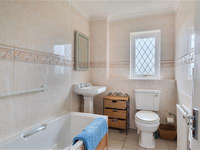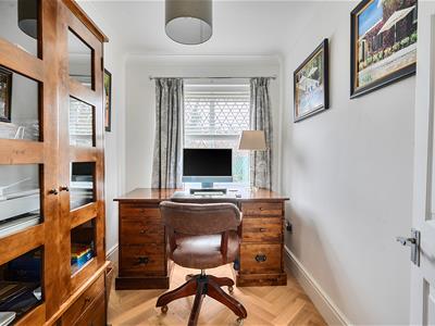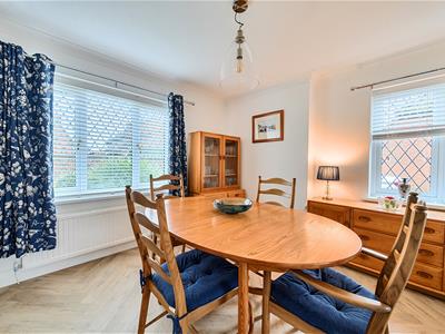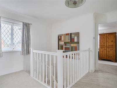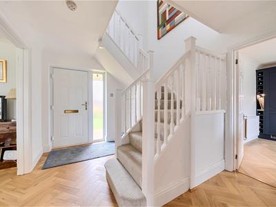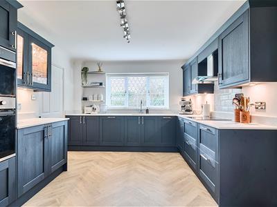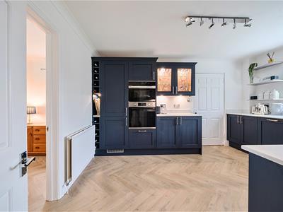 A light welcoming hallway with herringbone style flooring has an opening through to a 19ft dual aspect sitting room with sliding doors to the rear and a bay window to the front. There is an ideal work from home study and a stylish refitted downstairs cloakroom. The owners have installed a beautiful contemporary kitchen with quartz effect worktops and upstands and new flooring. The kitchen comes well equipped with an integrated fridge/freezer, combination microwave oven, dishwasher and 4 ring induction hob with extractor hood. A separate dual aspect dining room is set off the kitchen and has the potential to be knocked through into one room if so desired. Upstairs, the property benefits from new carpets and features a lovely gallery landing with four bedrooms, an en suite bathroom plus the main family bathroom, ensuring convenience and ease during busy mornings.