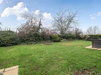 Externally, the property benefits from driveway parking for two to three vehicles, with potential to create additional parking should a reduction in the front lawn be preferred. The attached double garage has light and power, and features internal access to the kitchen and a door to the rear garden. It also provides space and plumbing for a washing machine and houses the oil-fired boiler. A side gate leads to a private west-facing garden, which includes a patio sun terrace, a level lawn, and planted borders, along with a pear tree and a flowering cherry tree—creating a peaceful and well-established outdoor space.